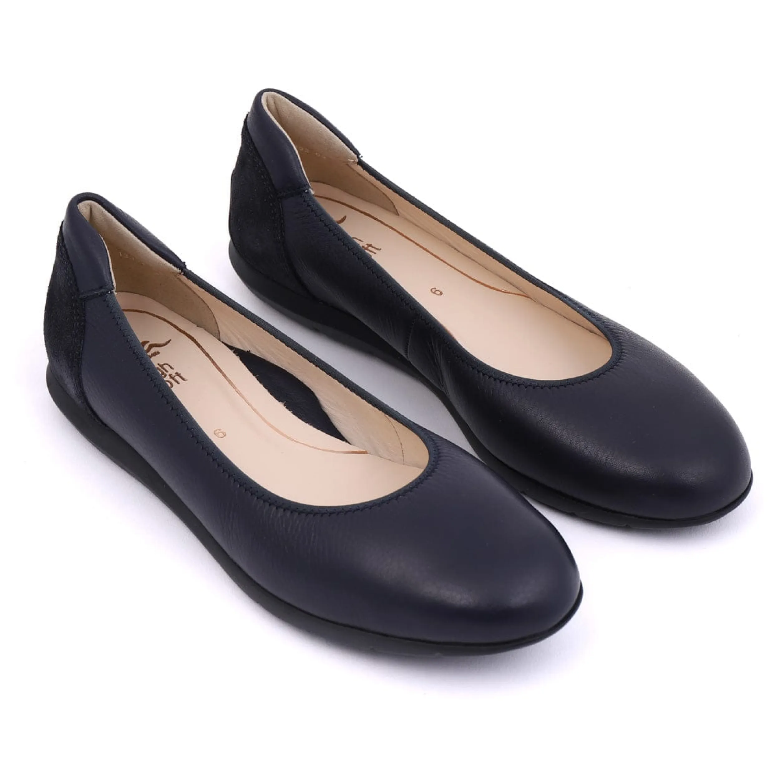 This 13302 Navy ballet flat is perfect for all-day comfort. Featuring a leather upper and fully leather lined construction with Strobel stitched details, it provides a snug and secure fit. The padded leather insoles, latex natural rubber soles, and HighSoft technology ensure maximum support and cushioning with every step.