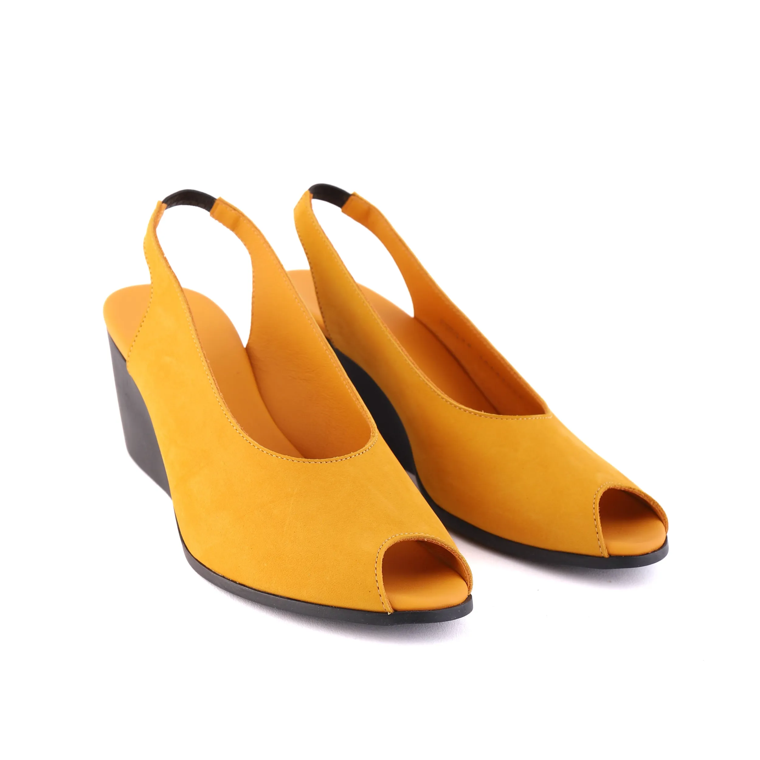 Indulge in the elegant sophistication of EGAELY Marigold Nubuck. This luxurious slingback heel is expertly crafted in Europe from premium nubuck leather, providing a soft and supple feel. The sleek design and soft sole make this a must-have for any refined wardrobe. Elevate your style with EGAELY.