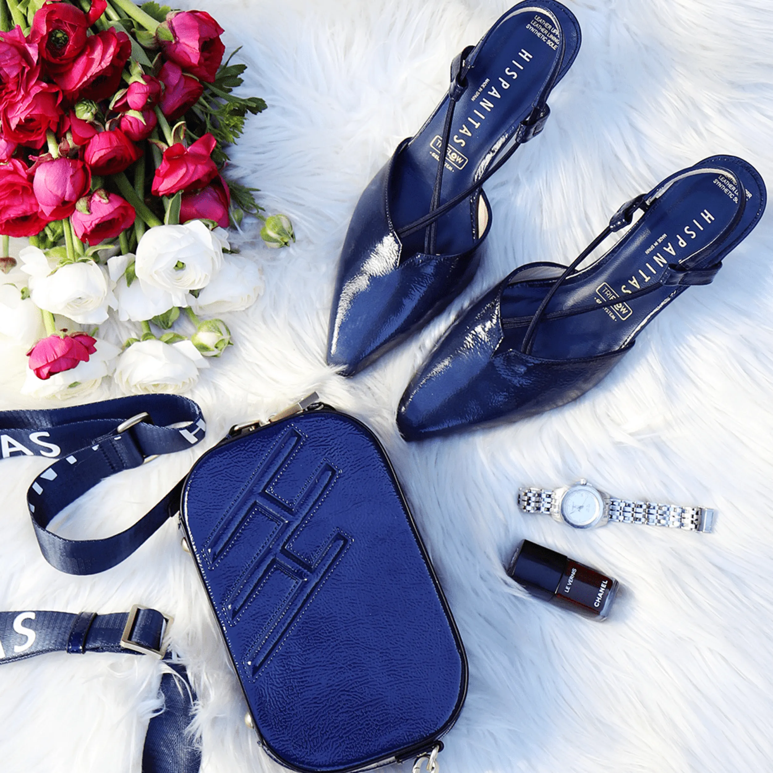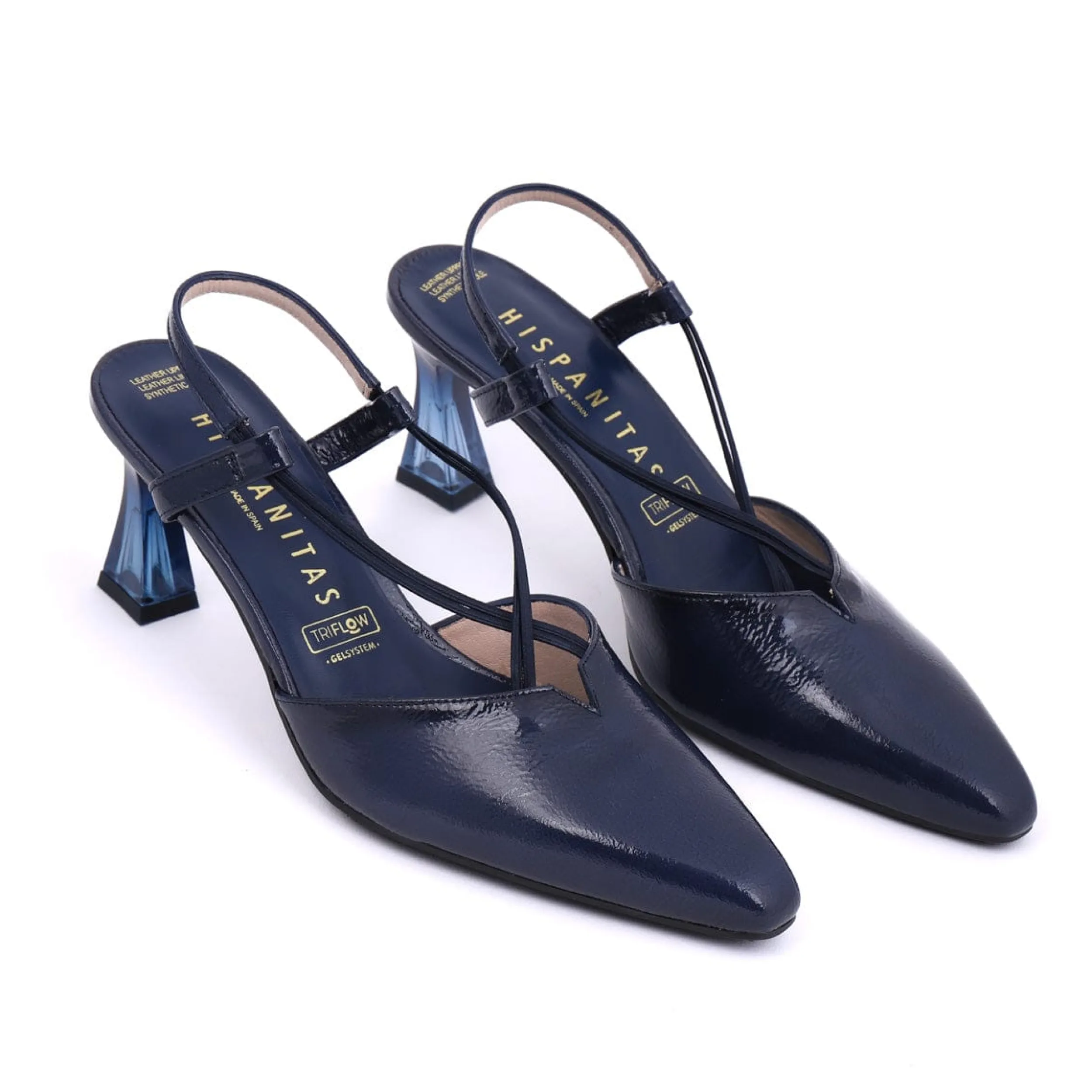 Experience unmatched comfort and opulent style with Hispanitas’ SEAN Navy Patent heels. Crafted with luxurious premium patent leather and supple leather lining, these slip-on shoes with a chic transparent 77mm heel wrap around the foot for a snug fit, benefitting from TriFlow technology for a soft sole. Made in Spain with exquisite attention to detail, these designer heeled shoes guarantee exceptional sophistication and quality.