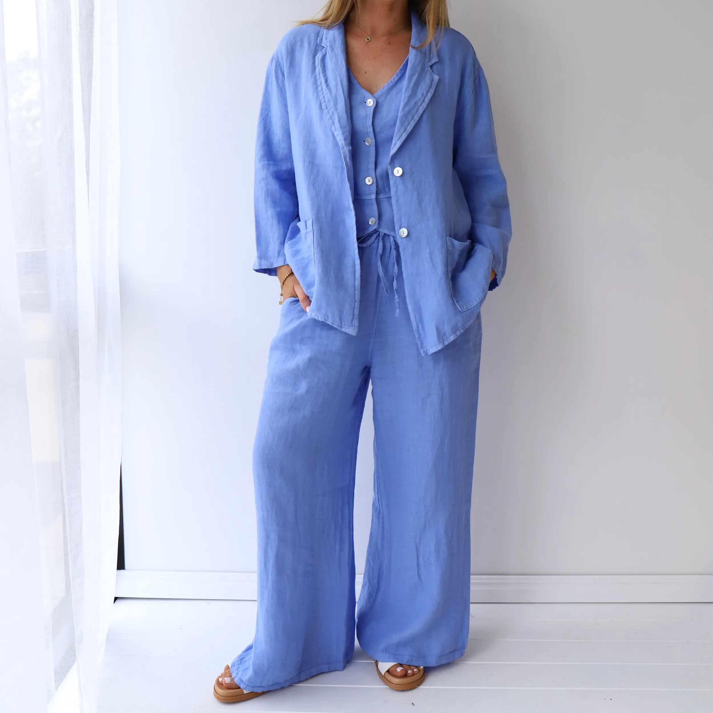 Indulge in the sophistication and elegance of the JACK bright blue pants, crafted from 100% natural linen and designed in Italy. The elasticated waist ensures comfort and style, perfect for any occasion. Elevate your wardrobe with these luxurious and exclusive pants.