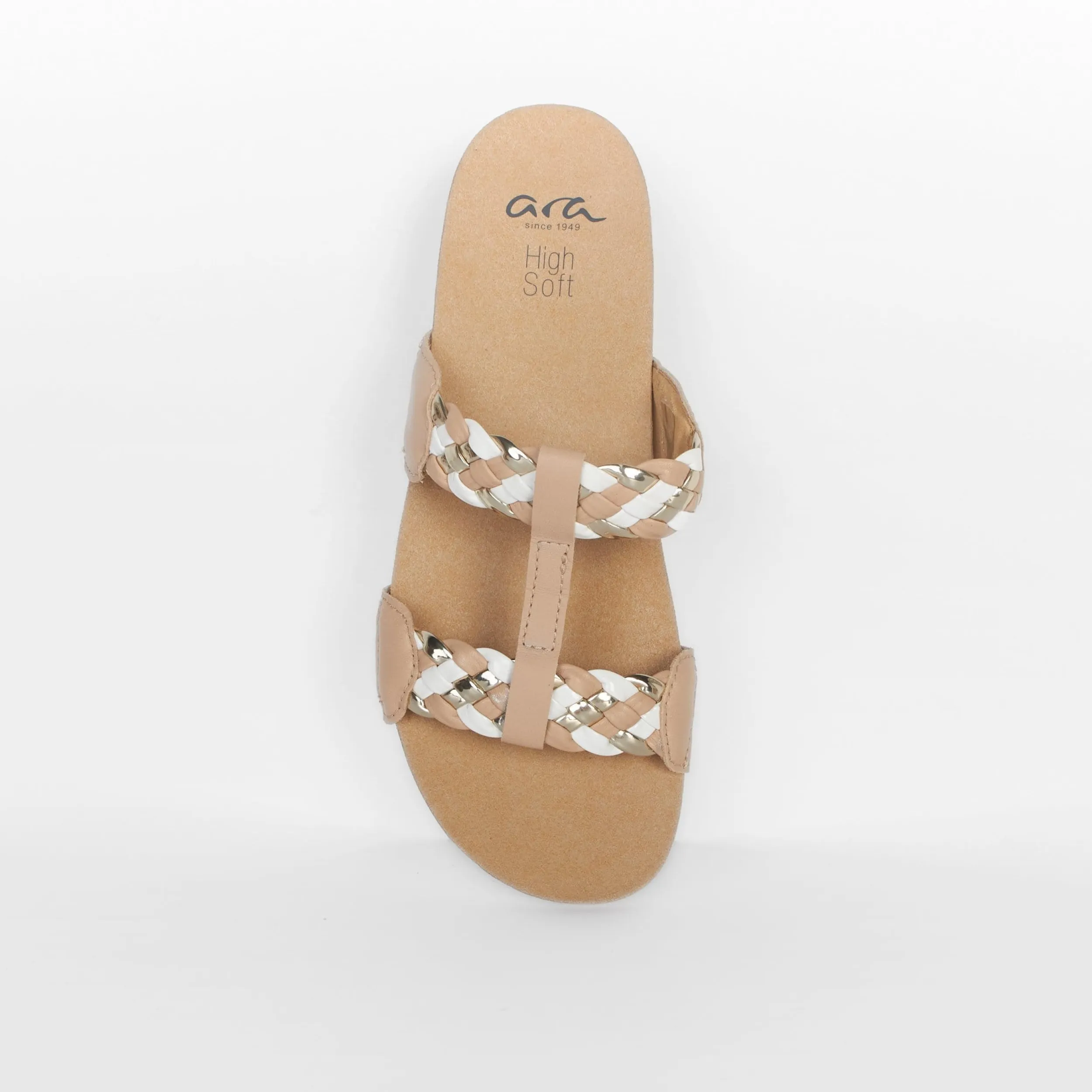 The 38212 Slide by Ara is a beautiful wedged slide with woven detailed straps. the elasticated straps allow for the perfect fit and easy slip on and off for all day wear and comfort. The wedged slide boasts beautifully woven straps and elastic features that make it easy to slip on and off. Enjoy all-day wear without sacrificing style or comfort.